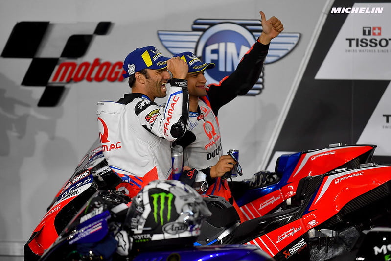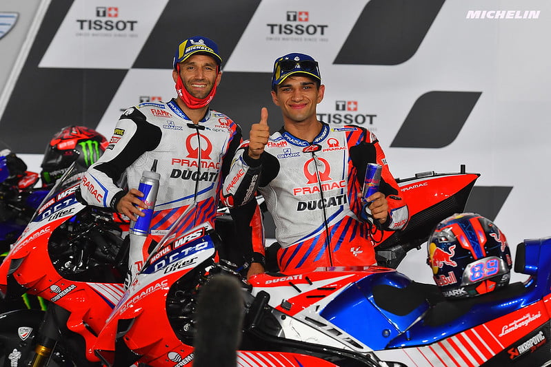 Jorge Martin : « Oui (rires). Cela a été une belle course, difficile pour moi car mener pendant 18 tours a été difficile. Mais quoi qu’il en soit, je pense que c’était mieux pour moi car j’ai pu contrôler mon rythme et contrôler mon pneu, là où j’avais souffert durant le weekend dernier. Je pense que j’ai donc fait un grand pas en avant. J’ai amélioré ma concentration et j’ai aussi progressé dans la gestion de mes pneus, ce qui est très important. Bien sûr, il me manque encore un peu de vitesse, j’étais un peu à la limite pour le suivre. Mais je me suis dit « OK, c’est le moment d’attaquer et de le suivre pour que je puisse conserver ce podium ». Et à la fin, c’était dommage de perdre la deuxième place et je ne suis pas heureux à 100 % car quand j’ai vu que c’était Johann, je me suis dit « whaou, je ne peux pas essayer : si j’essaye et que nous tombons, ce sera un désastre ». Je veux dire, il a un rôle différent dans le team et il doit essayer de remporter le championnat. Mais j’ai essayé de passer intérieur pour tenter de conserver le podium, et la troisième place est fantastique. Mais quoi qu’il en soit, la troisième place est fantastique après la courte pré-saison, et j’ai saisi l’opportunité aujourd’hui d’être là en MotoGP, donc je suis très heureux. »