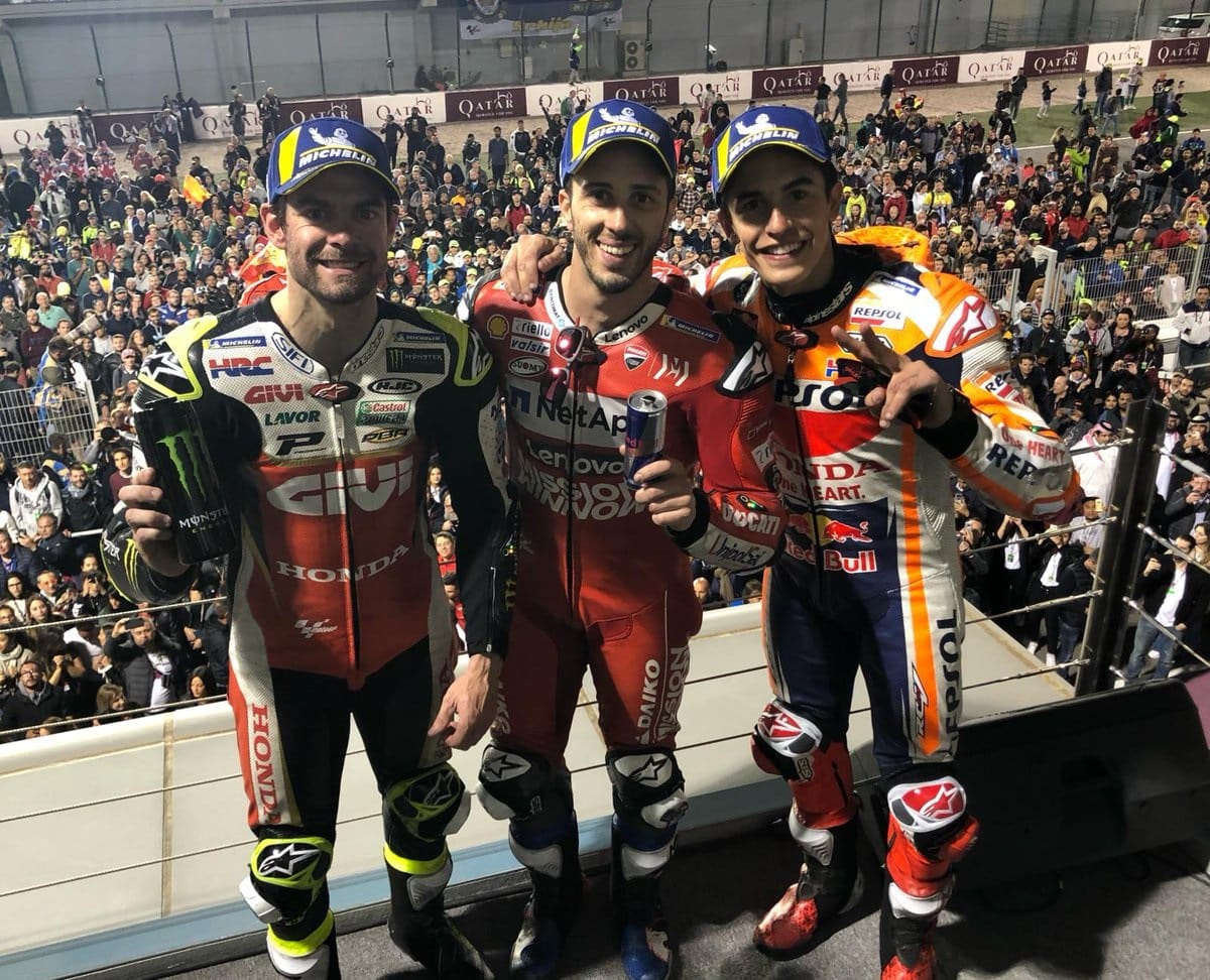 A peu de chose près, le déroulé de ce Grand Prix du Qatar et son final a été en tout point identique à celui de l’édition 2018. Soit un Dovizioso qui impose son rythme pour préserver ses gommes avec un Márquez en chasseur qui attend le signal pour lancer le duel. Ce dernier a lieu dans le dernier tour avec un ultime virage bien négocié par l’officiel Ducati qui laisse passer la fougue du pilote d’usine Honda pour filer droit en vainqueur vers l’arrivée. Oui mais…
