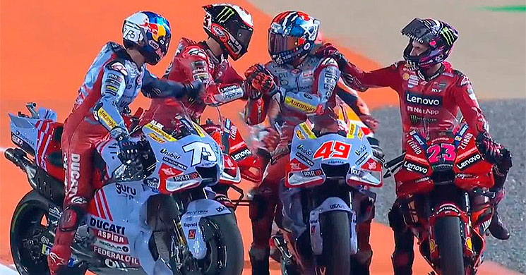 Au bilan, la course Sprint de Valence pourra donc être décisive pour Pecco Bagnaia dans la lutte pour le Championnat du Monde. Avec sa seconde place à Losail ajoutée à la dixième de Jorge Martin, il possède 21 points d’avance alors qu’il n’en avait plus que 7 il y a 24h00. Si Pecco gagnait encore 4 points sur Martin dans le Valencia Sprint, il serait champion du monde dès le samedi, étant donné qu’avec 25 points d’avance avant la longue course en Espagne, il serait toujours titré après avoir récolté un plus grand nombre de victoires lors de cette campagne…