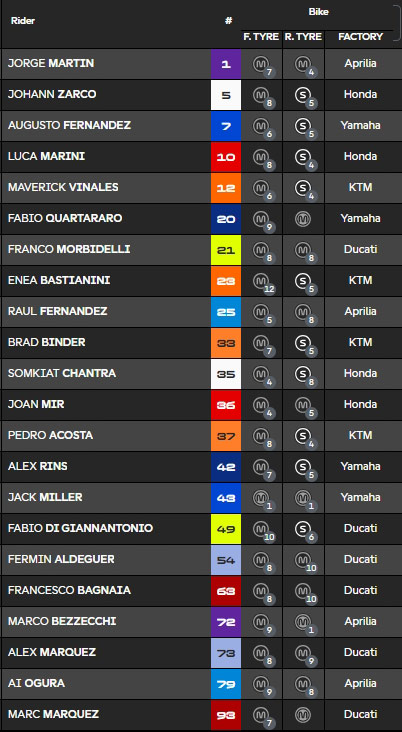 On le saura dans une petite heure et saluons au passage les performances de nos deux Français, Fabio Quartararo (Monster Energy Yamaha MotoGP) et Johann Zarco (CASTROL Honda LCR), pré-qualifiés directement en Q2 comme Fabio Di Giannantonio (Pertamina Enduro VR46 Racing Team), Alex Marquez (BK8 Gresini Racing MotoGP), Pedro Acosta (Red Bull KTM Factory Racing), Maverick Vinales (Red Bull KTM Tech3) et Fermin Aldeguer (BK8 Gresini Racing MotoGP).