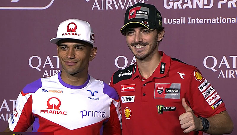 La conférence de presse en prélude au Grand-Prix du Qatar MotoGP, sur le circuit de Losail, a réuni Francesco Bagnaia et Jorge Martin, les deux prétendants au titre mondial, pour répondre aux diverses questions des journalistes.