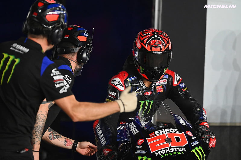 Fabio Quartararo : « J’ai fait un très bon départ puis, dès le deuxième tour, nous avons la pression du pneu qui était vraiment très haute. Sur cette piste, cela est déjà arrivé au deuxième tour, donc ensuite nous avons rétrogradé. Globalement, je n’ai aucune idée (du pourquoi). J’ai attaqué à mon maximum puis le pneu arrière s’est dégradé. Pour être honnête, je ne sais pas. Je m’attendais à un peu plus de rythme mais nous n’aurions rien pu faire de mieux. C’est le problème. »