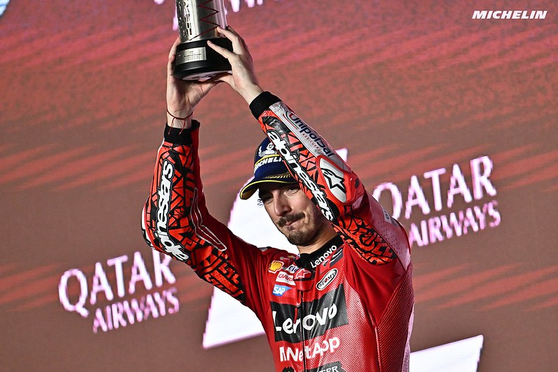 Nous allons nous tourner vers le champion du monde, le pilote de l’équipe Ducati Lenovo, Pecco Bagnaia. Pecco, en termes de championnat, c’est probablement les 20 points les plus importants que vous ayez gagnés dans votre carrière. Parlez-nous de votre Grand Prix mouvementé au Qatar…