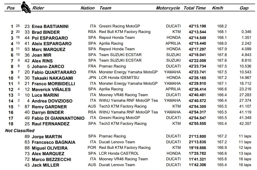 « Je dirais les deux Honda, et bien sûr Enea Bastianini et Brad Binder, que je ne croyais même pas capable de finir la course ici. »