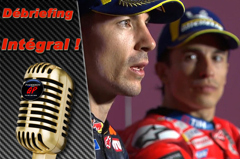 Cette conférence de presse du Grand Prix du Qatar MotoGP 2025, qui a réuni Marc Marquez, Maverick Vinales et Francesco Bagnaia pour leur débriefing, ne correspond plus au classement du Grand Prix, puisque Maverick Vinales a ensuite été déclassé de sa 2e position, suite à une pression de pneu avant non conforme.