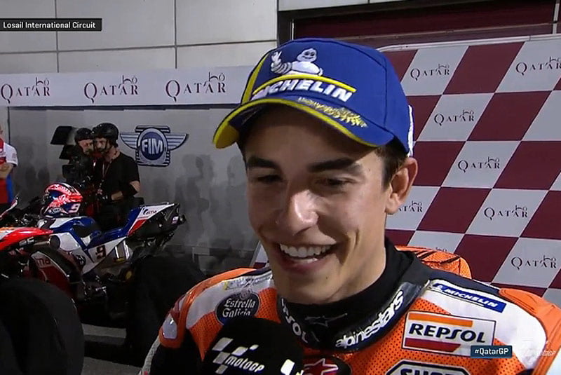 A peine descendu de sa Honda RC 213 V officielle après avoir obtenu la seconde place sur la grille du Grand Prix du Qatar, Marc Márquez a confié sa joie au micro du site officiel MotoGP.com.