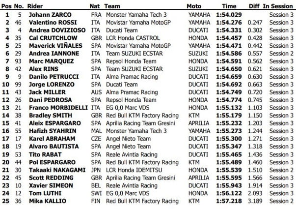 Aussi, nul doute que les écarts vont se resserrer lors du week-end de course d’autant que certains, à l’image de Johann Zarco (voir ici), ont avoué n’avoir sans doute pas donné leur 100%.