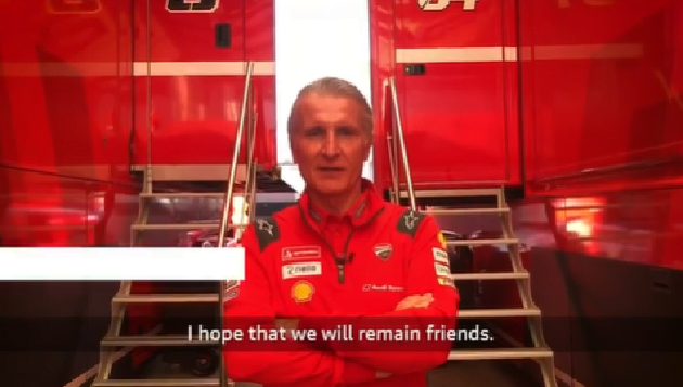 Dall’Igna dit à Dovizioso : « nous sommes arrivés au terme de notre cheminement commun et nous avons vécu de bons et de mauvais moments. Je ferai de mon mieux pour me souvenir des bons ». Et à «Petrux» il déclare : « je suis vraiment désolé, parce que tu es une personne vraiment gentille et je ne te souhaite que le meilleur pour l’avenir ».