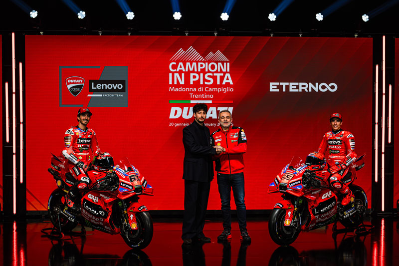 Mauro Grassilli (Directeur Sportif de Ducati Corse) : « Je tiens à remercier Federico pour avoir cru en notre projet. Nous sommes vraiment heureux d’accueillir Eternoo dans l’univers Ducati et nous sommes fiers d’avoir à nos côtés cette excellence profondément liée à notre territoire. Ce partenariat est basé sur des valeurs communes qui lient nos entreprises, comme le dévouement au travail et la vision innovante ».