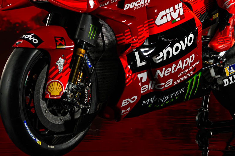 Effectivement, le champion espagnol arbore aussi le logo rouge et blanc sur son bras droit, là où Francesco Bagnaia affiche FLEX-BOX, une entreprise internationale de premier plan dans la fabrication de conteneurs pour le transport maritime. Est-ce la raison de cet engagement supplémentaire à l’égard de l’Espagnol : la combinaison de l’Italien était-elle déjà « pleine » ? L’avenir le dira peut-être…