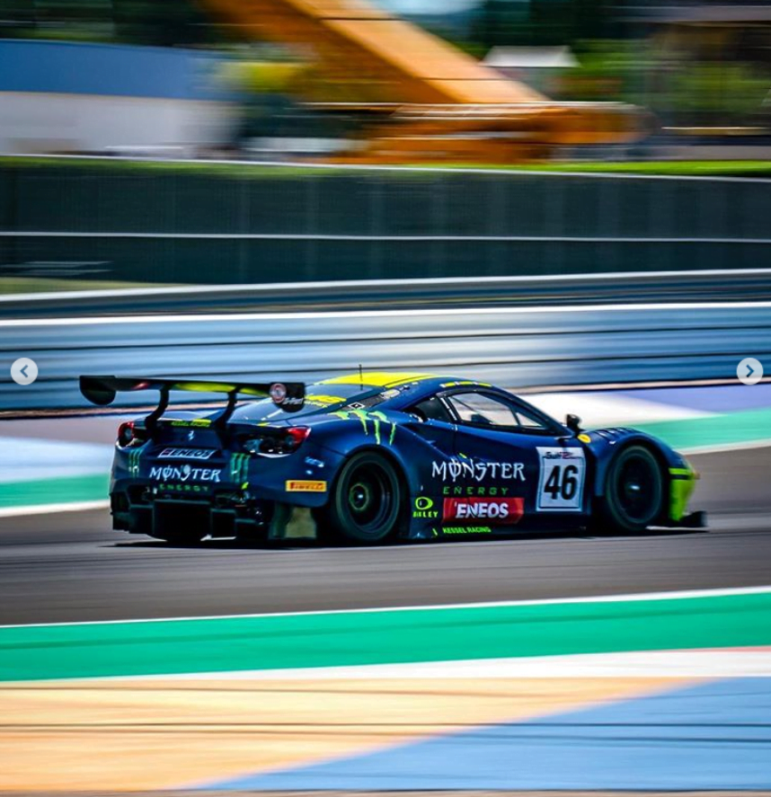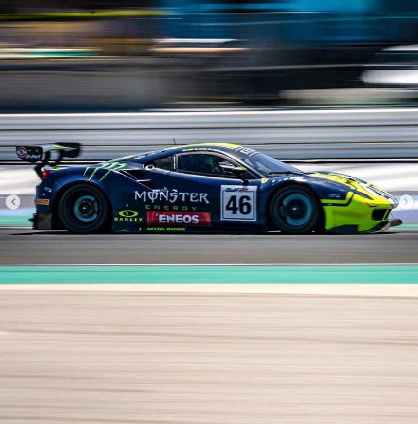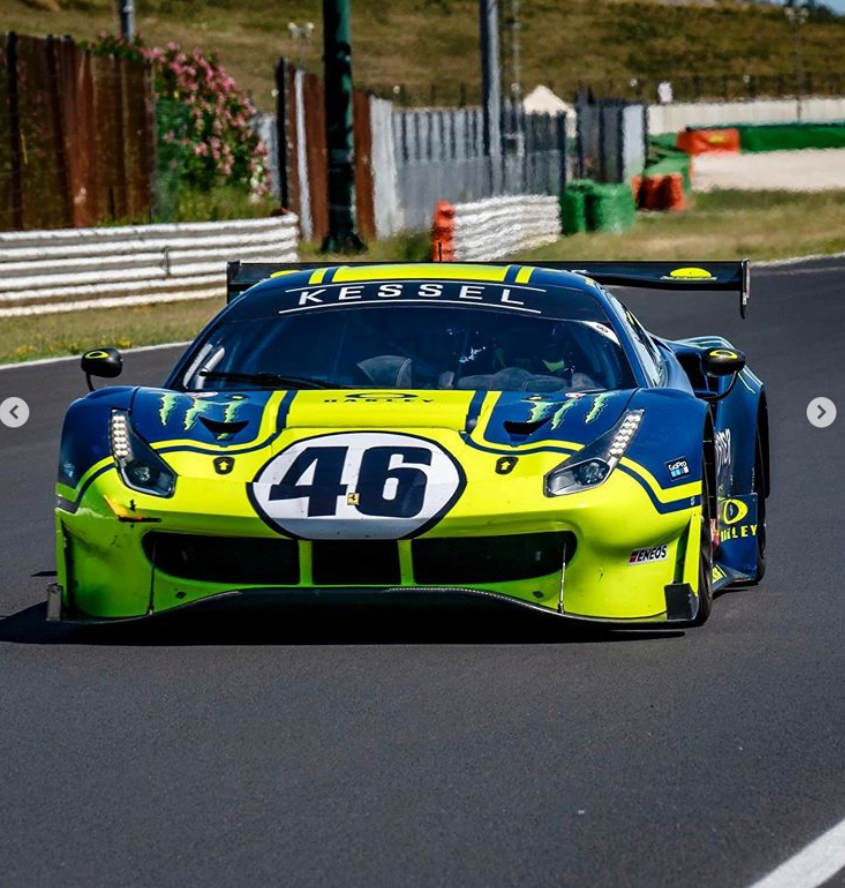 Valentino Rossi a limé la piste de Misano avec une moto, mais il a poursuivi son escapade avec une Ferrari. Il s’agit de la 488 GT3 du Team Kessel, la même avec laquelle il s’était imposé par le passé sur le circuit d’Abu Dhabi.