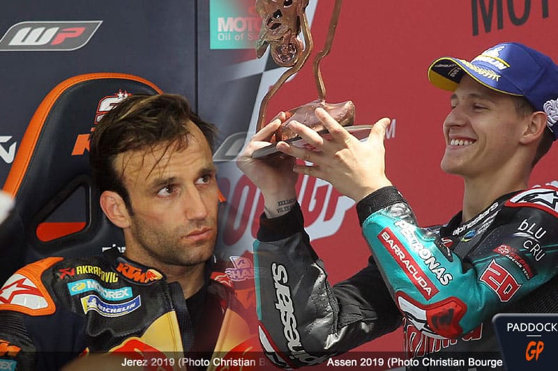 En ce qui concerne les pole positions, Fabio Quartararo en a déjà réalisées 3 (Jerez, Barcelone, Assen), ainsi que 2 deuxième places sur la grille (Mugello, Sachsenring), alors que Johann Zarco n’en avait mis qu’une seule dans son escarcelle (Assen), ainsi qu’une 2e place au Mans.