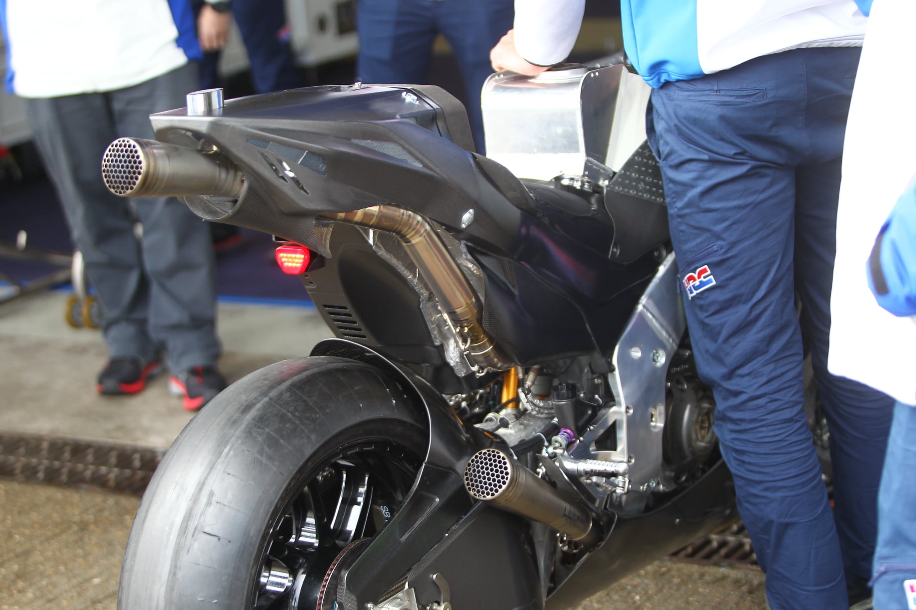 Honda a également testé un nouvel échappement à Jerez. Avec le développement du moteur gelé pour tous sauf Aprilia, l’optimisation de la puissance délivrée en changeant l’échappement semble avoir été une préoccupation de nombreuses équipes.