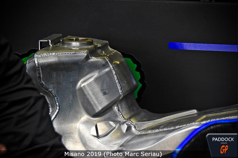 Toutefois, et paradoxalement, le règlement du MotoGP est 10 fois plus permissif que celui de son homologue pour les voitures en ce qui concerne les diolefines, un additif particulièrement suspecté de favoriser la puissance délivrée mais dont l’innocuité fait largement débat dans le paddock depuis qu’une odeur nauséabonde se dégage de certains box où, au moment du remplissage des réservoirs, opèrent des mécaniciens largement protégés par des masques et des gants remontant jusqu’aux coudes…