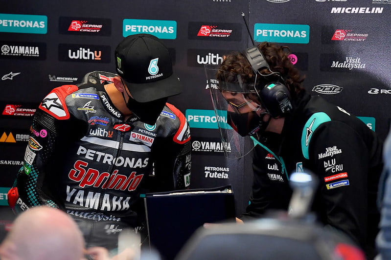 Massimo Meregalli a expliqué au micro de Sky Sport les difficulté rencontrée par les M1 sur ce circuit particulier : « Cette piste n’est pas bonne pour nos motos, mais de toute façon je ne pensais pas à un départ aussi difficile. Nous sommes partis d’une configuration plus ou moins similaire à celle de l’année dernière. La piste n’est pas encore assez gommée, mais j’espère que la météo se maintiendra même pendant la FP2. À Brno, Viñales a décidé de partir avec un pneu déjà rodé et, cette fois, cela ne l’a pas payé. Il n’a pas eu d’adhérence au freinage ou à l’accélération, dès le départ. Il a peut-être essayé de compenser quelque chose lors de l’accélération, mais cela a été trop brutal et la température des pneus est devenue trop élevée. »