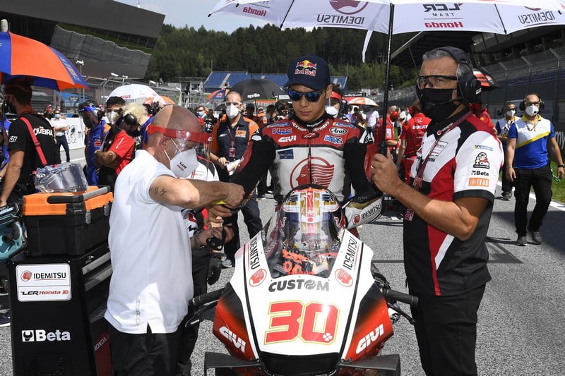 Avec une deuxième qualification dans le top 10 depuis le début de la saison, le Japonais avait confirmé ses bons essais libres samedi, mais le début de course avait été un peu plus compliqué et il était redescendu en 14e position. Il se trouvait en bagarre avec ses coéquipiers lorsque le drapeau rouge a été sorti suite à l’accident impliquant Johann Zarco et Franco Morbidelli.