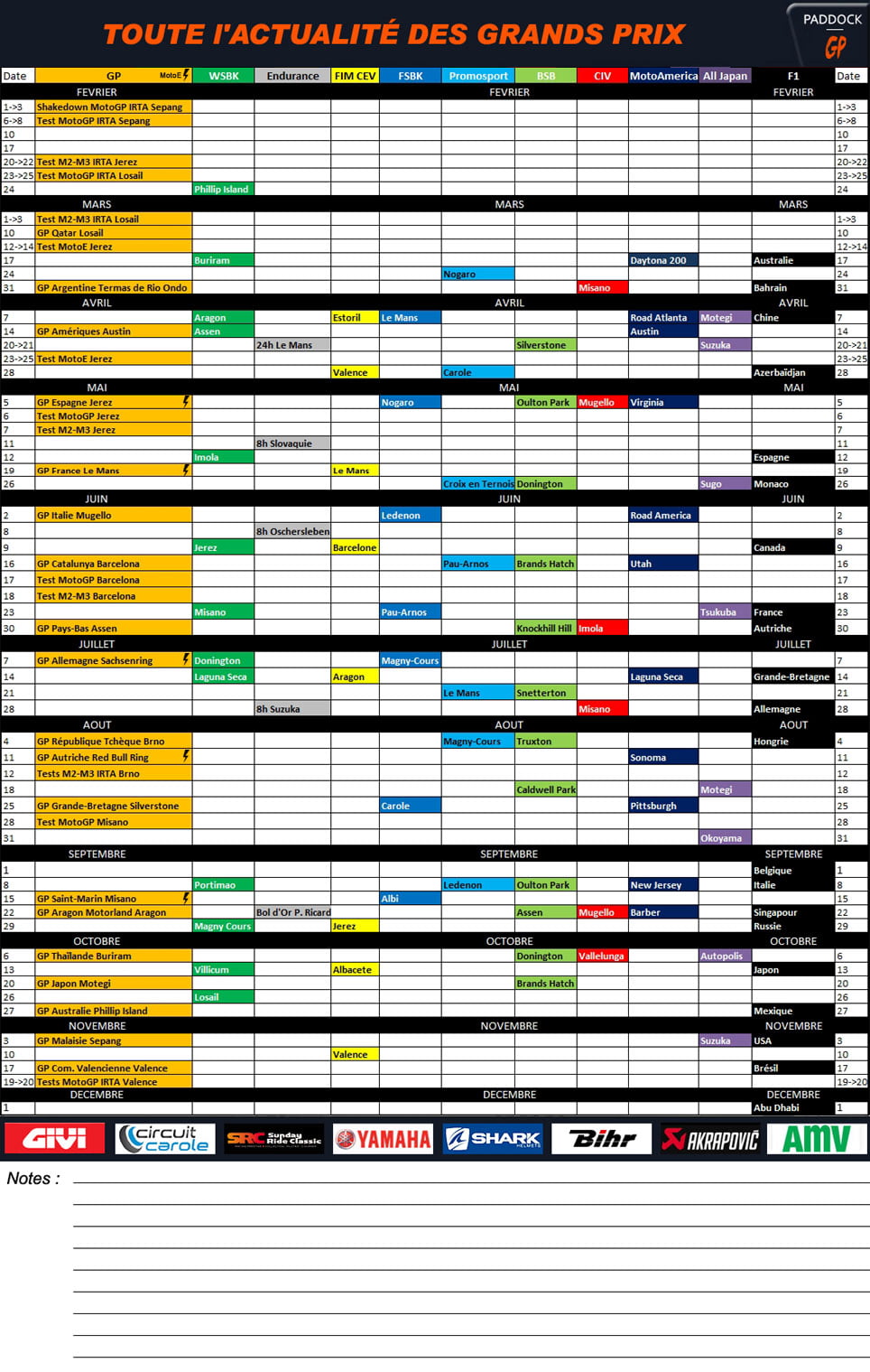 Mercredi 6 au vendredi 8 février: Test IRTA MotoGP. Tous les pilotes officiels sont attendus à l’exception de Jorge Lorenzo, remplacé par Stefan Bradl. Piste ouverte de 3h00 à 11h00, heure française. Pas de diffusion en direct mais Live Timing sur MotoGP.com et « article Live » sur notre site. Communiqués et déclarations des pilotes. Entrée gratuite dans la tribune des stands.