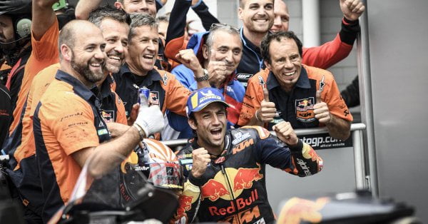 Comme l’Espagnol est cinquième, on n’a pas boudé son plaisir chez KTM, même si on sait que les circonstances ont, une fois encore, aidé. Mais elles étaient les mêmes pour tout le monde et ce sont bien ses pilotes qui en ont tiré le bon parti. Dans le cas de Zarco, cet exploit est d’une importance vitale. Car jusque-là, c’était plutôt la déprime… Le patron des sports, Pit Beirer, ne manque pas l’occasion de marquer le coup : « les conditions météorologiques étaient de nouveau de notre côté. Ces positions de départ de Johann et de Pol ne sont pas vraiment une véritable révélation de notre niveau. Mais c’est un grand moment ».