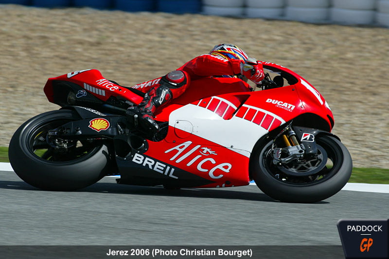 Un petit retour en arrière en photos s’impose donc pour rendre hommage à la firme italienne qui n’a pas hésité à défier avec succès des constructeurs japonais que l’on croyait jusque là invincibles en catégorie reine ! Sous la direction technique de Filippo Preziosi puis de Luigi Dall’Igna, les Desmosedici n’ont cessé d’innover pour être aujourd’hui les machines que l’on tente de copier. Bravo à eux !