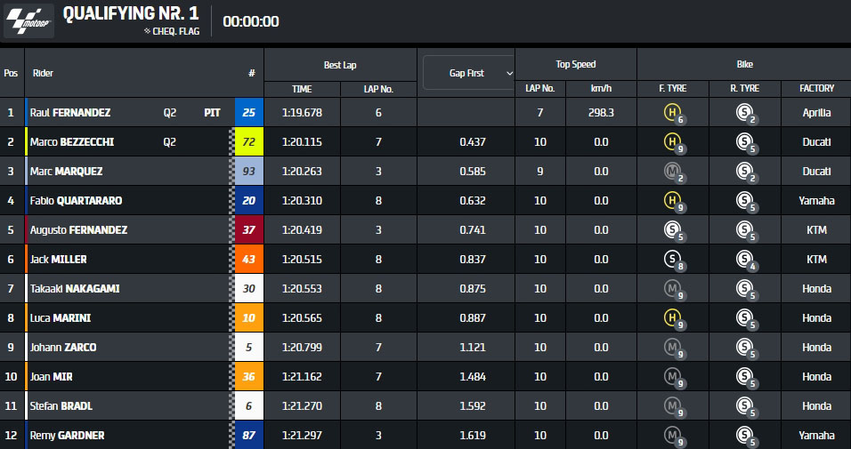 Another eventful Q1 is in the books! 🏁@25raulfernandez and Marco Bezzecchi advance to the fight for pole ✅@marcmarquez93 will start from P13 👀#GermanGP 🇩🇪 pic.twitter.com/vfSavhg2We