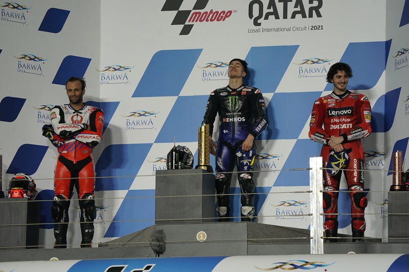 Voilà le tableau de cette première grille de la saison 2021. Cependant, si Bagnaia et Quartararo mènent la danse à l’issue de la première séance de qualifications de l’année, c’est Viñales qui va être le plus à son avantage le dimanche, avec une course parfaitement maîtrisée et une meilleure gestion des gommes que ses rivaux, ce qui va lui permettre de s’imposer à l’occasion de cette manche inaugurale, comme cela avait déjà été le cas en 2017 pour sa première avec l’équipe officielle Yamaha.