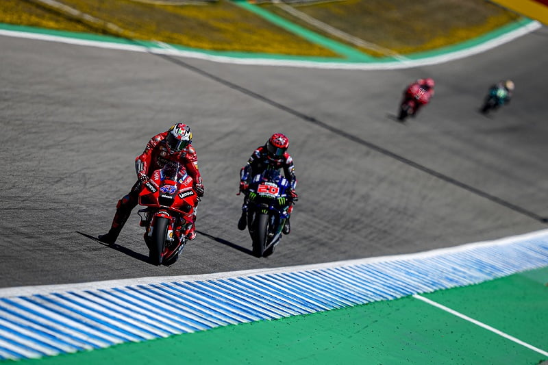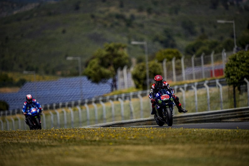 Il n’est pas le seul à faire forte impression puisque Quartararo signe pour sa part sa première pole position de la saison, devant Rins et Zarco. Un très bon point pour le pilote Yamaha, qui n’était pas vraiment attendu à pareille fête, surtout après sa contre-performance quelques mois plus tôt en Algarve, lors de la finale de la saison 2020. Le Français va par la suite confirmer en course en livrant une prestation pleine de maîtrise, parvenant dans un premier temps à contrer la menace Rins (ce dernier finira par chuter) pour ensuite aller remporter sa deuxième course de suite.