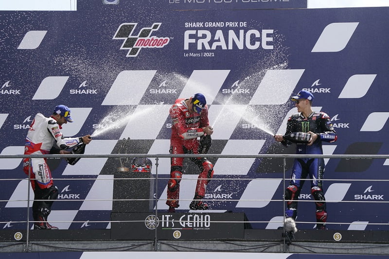 Au pied du podium, son coéquipier Pecco Bagnaia capitalise avec une belle quatrième place, juste devant Danilo Petrucci qui signe enfin un résultat de choix pour sa nouvelle équipe Tech3, sur les lieux mêmes de son second et dernier succès en MotoGP un an auparavant. Même chose pour Álex Márquez, qui avait terminé deuxième du GP de France 2020 et qui cette année rallie l’arrivée à une prometteuse sixième place. Toujours au rang des satisfactions, Valentino Rossi se montre tranchant en qualifications en signant le neuvième chrono, avant de finir à la 11e place en course.