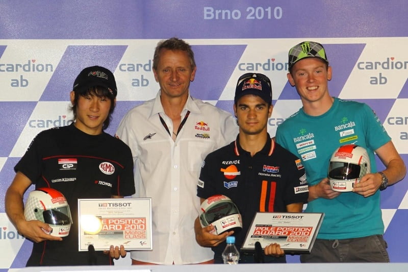 Schwantz avec Shoya Tomizawa, Dani Pedrosa et Bradley Smith