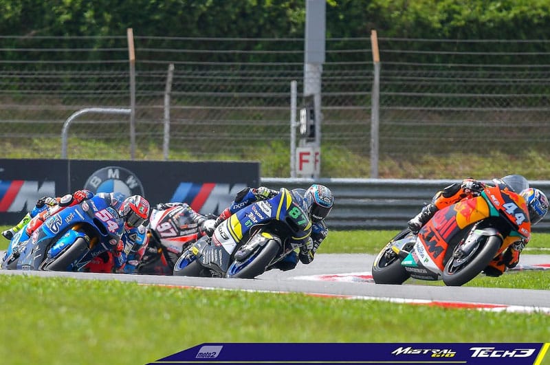 « Il y a quelques courses, et vous en avez parlé avec Guy Coulon, certains disaient que Yamaha devait faire un V4 pour être devant en MotoGP, que les 4 cylindres en ligne étaient plus suffisants, et bla, et bla, et bla … Et il vous avait dit que c’était marrant car les Suzuki fonctionnaient, et donc que ce n’était pas le cas. Aujourd’hui, si vous regardez, Márquez est un extraterrestre et c’est lui qui fait gagner Honda plus que le V4, et à Sepang, les Yamaha et les Suzuki performaient. Donc là, on pourrait presque dire que ce qui ont un V4 devraient commencer à réfléchir à faire un 4 cylindres en ligne… Je fais exprès d’être provocateur, mais tout ça, c’est pour dire que les gens qui hiérarchisent devraient faire attention à ne pas être trop péremptoires. Et c’est la même chose pour le Moto2, parce qu’on dit toujours que sans une Kalex ou une KTM, il n’y a point de salut. Mais Speed Up a démontré cette année qu’avec un top pilote, et Fabio en est un, on pouvait se battre avec eux. Et Remy, qui commence à vraiment bien rouler, montre aussi qu’une Mistral peut se battre pour les premières lignes et pour les podiums. Le pilote a fait deux petites erreurs qui l’ont empêché d’être sur le podium, mais je pense qu’en Australie il était plutôt plus vite que Mir puisque c’est Mir qui l’a gêné et qui a fait qu’il a chuté. Et Mir finit 2e en Australie… Là, Remy en avait vraiment gros sur la patate. Là, en Malaisie, il s’est un peu trop énervé. Quand il voit qu’il est devant, il a tellement envie de bien faire qu’il sur-pilote. Mais en tout cas, on a vu que la première ligne n’était pas passée loin et qu’il pouvait encore au moins jouer un top 5.