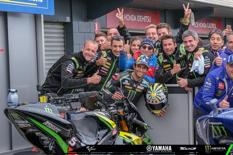 Hervé Poncharal : « oui ! Et encore une fois, vous me tendez la perche, mais comme l’année dernière je vois tout un tas d’observateurs avertis, de connaisseurs, de personnes qui sont dans le paddock depuis des années, qui disent que les Yamaha ont progressé parce qu’ils ont mis le doigt sur ceci ou cela en électronique. Je vous dirai oui, mais à ce moment-là pourquoi Zarco, et on peut même dire Syahrin, ont été beaucoup plus performant alors que nous, on a reçu zéro plus zéro. Je vous le garantis. Donc oui, je pense qu’on a fait une belle tournée même si j’ai beaucoup de regrets, et je pense que le pilote et l’équipe technique aussi, on a beaucoup de regrets sur Phillip Island parce Johann avait pris le pneu soft à l’arrière, et c’était le seul dans le groupe de ceux qui pouvaient faire de bons résultats. Je pense que c’était la bonne option parce que les pneus durs ont beaucoup patiné sur la 2e partie de la course. Et quand vous connaissez le tropisme de Johann pour ce circuit là, la course qu’il a faite l’année dernière et l’envie qu’il avait de briller après sa belle qualification, il était au très bon endroit. Il était 4e au coude à coude avec Márquez quand il est tombé, et tous les espoirs étaient permis. On ne le saura jamais, mais sans cet incident de course qui était ultra spectaculaire et qui nous a fait très très peur, je pense sincèrement qu’il y avait moyen à ce que la tournée Asie–Pacifique soit encore plus forte. Mais bon, on est déjà content et on se contente de ce que elle nous a apporté, mais Phillip Island reste quand même comme un petit os qu’on a dans la gorge ».