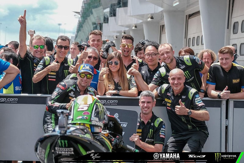 « Et une pole position, même si certains diront qu’il n’a fait que le 2e temps. Un podium, qui est le premier depuis Jerez. Et là, cela faisait longtemps qu’on l’attendait, et lui peut-être encore plus que nous. On re-duplique ce qu’on avait fait l’année dernière, puisque l’année dernière il fait le 2e temps derrière Pedrosa et 3e en course derrière les 2 Ducati sous la pluie. Au niveau météo, c’était le contraire : l’année dernière, la qualification a été sur le sec et la course sous la pluie. Là, on a fait la qualification sur une piste humide et la course sur le sec. On est très heureux. Je pense que cette tournée outre-mer a été géniale. Elle a été géniale par les résultats, parce que Thaïlande belle course, Japon belle course malgré tout, Australie on n’en a parlé, et superbe résultat en Malaisie : back on the podium ! Mais là aussi été géniale par l’ambiance, parce Johann, même s’il a eu des moments d’énervement pendant le milieu de saison, là on l’a retrouvé beaucoup plus serein, beaucoup plus drôle comme on l’a connu en 2017. Avec beaucoup plus d’empathie et d’implication avec son équipe technique, notamment Guy (Coulon) et Alex (Merhand). On l’a vu beaucoup bien parler de Guy et d’Alex, et même de Ben son technicien suspensions Öhlins, dans ses communiqués de presse. Et on a passé des bons moments ! En Australie, on dort dans des bungalows, et Johann était dans celui de Guy, Fido (Jérôme Poncharal), Steve (Blackburn) et Gérard (Vallée), donc on va dire le bungalow des vieux, entre guillemets. Le soir, il dînait avec eux et regardait les séances sur son ordi, il discutait beaucoup et avait en tout cas une proximité qui nous a fait plaisir. Et c’est vrai que dans ces Grands Prix outre-mer, notamment en Australie, on retrouve l’essence de ce qu’est une équipe. Tu n’as plus les hôtels, les médias, les machins, et on est tous ensemble le soir. Il est venu faire un barbecue dans mon bungalow le jeudi soir, où il y avait d’ailleurs Miguel Oliveira, Hafizh Syahrin, Remy Gardner, etc., qui étaient là aussi. Ça fait plaisir, car on est alors vraiment la journée et la soirée tous ensemble, en osmose et en immersion, plus que lors des courses en Europe. Donc de bons moments, que ce soit pour les résultats ou pour les relations humaines, avant que chacun se sépare ».
