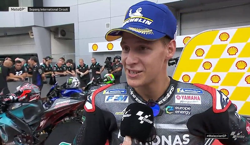 A peine descendu de sa Yamaha M1 du team satellite Petronas Yamaha SRT après avoir obtenu la pole position sur la grille de départ du Grand Prix de Malaisie, Fabio Quartararo s’est confié devant la caméra du site MotoGP.com avec la satisfaction d’avoir surmonté une épreuve difficile...