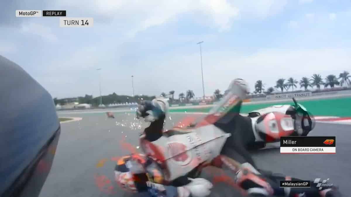 « Je ne fais pas encore tout bien, mais j’étais en bataille avec Miller et si je l’avais plus rapidement passé, j’aurais été avec Quartararo pour une belle bataille entre Français. Mais je n’ai pas pu passer Miller et Mir est arrivé sur moi en perdition. Ce sont des choses qui arrivent, même si ça aurait fait une belle position ». Au passage, son équipier Crutchlow a évolué derrière lui tout au long de ce Grand Prix de Malaisie avant de chuter tout seul.