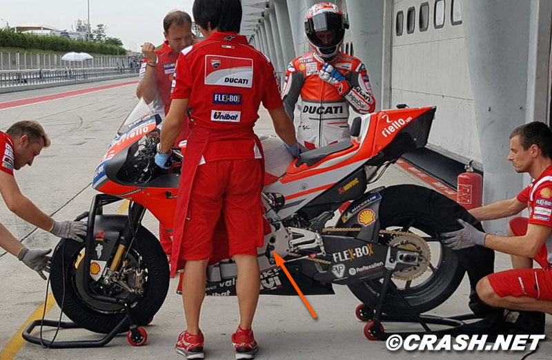 Une nouveauté semble également avoir été essayée par Casey Stoner chez Ducati.