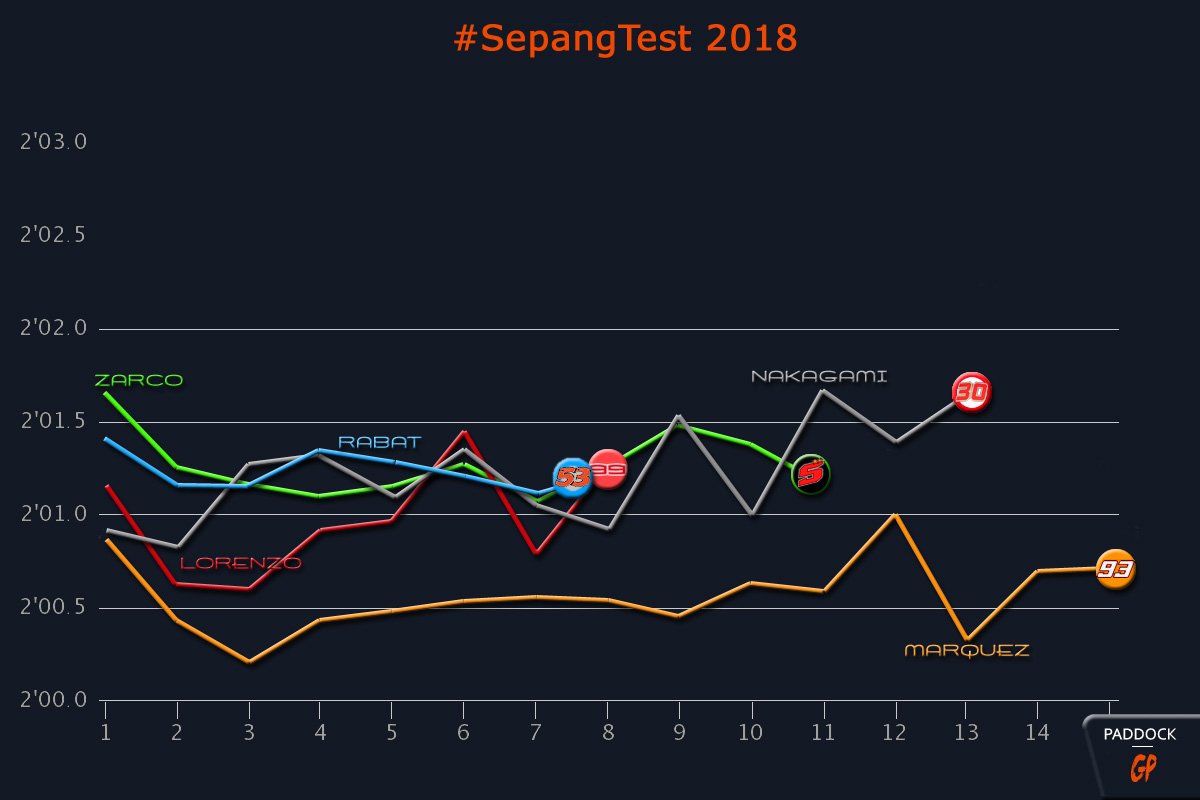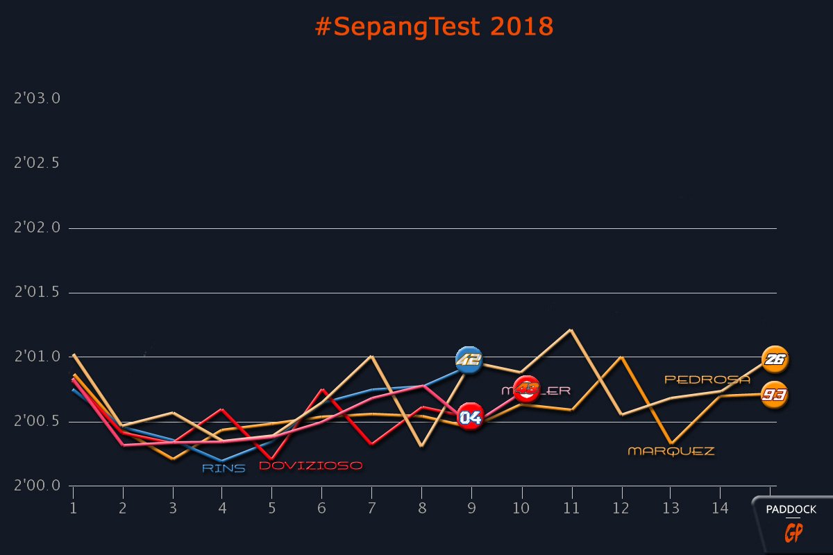 On peut également noter que son coéquipier, Dani Pedrosa (2e), est aussi à l’aise sur un tour que sur 15, ce qui fait assurément de Sepang un de ses terrains de jeu favoris.