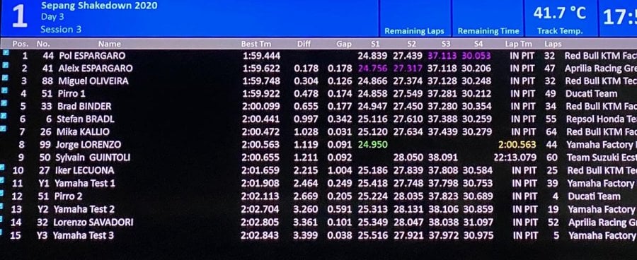 MotoGP Shakedown Sepang J3 : chronos