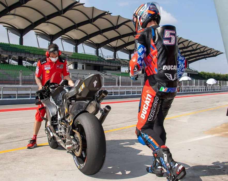 Au terme de ce lundi en Malaisie, personne n’a réussi à battre le temps de 2’00″898 marqué par Raul Fernandez qui s’est confirmé comme le protagoniste de la première journée du shakedown à Sepang avec son chrono réalisé pendant les heures chaudes de la journée. A titre de comparaison, le record du tour est de 1’58.3. L’Espagnol a non seulement été rapide, mais a également fait preuve de beaucoup de régularité. Michele Pirro, pilote d’essai Ducati qui sert de référence en Malaisie, a été distancé de 0″144, devant une autre KTM, celle de Mika Kallio, les deux ayant effectué leur meilleur chrono en toute fin de journée, au moment où les températures redescendaient quelque peu. L’Italien a travaillé sur deux nouvelles motos avec le long échappement Akrapovic inférieur des cylindres avant,