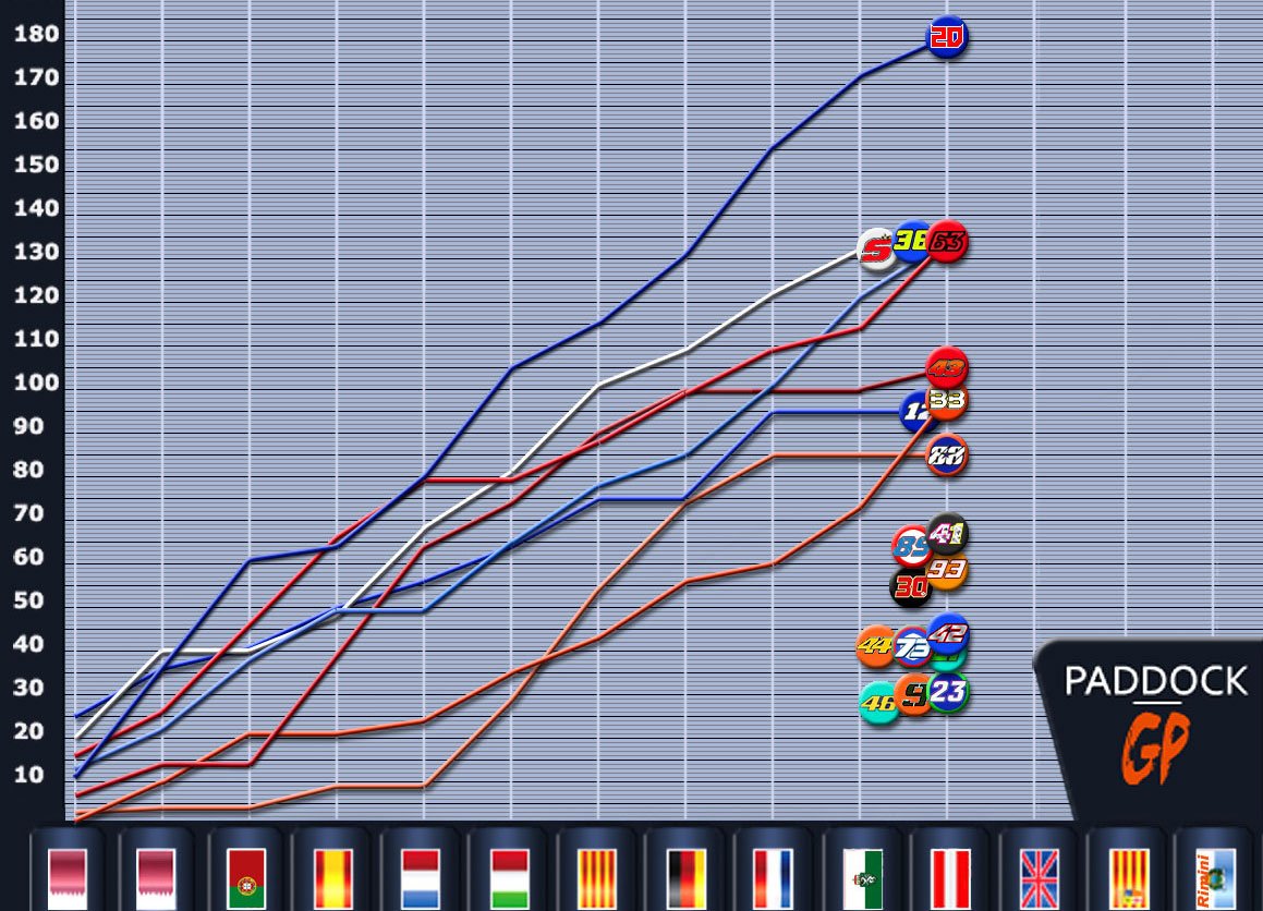 Et pas question de commencer à gérer, avec encore 7 courses au calendrier, donc potentiellement 175 points à engranger: pour le moment, tous les pilotes ayant pris part régulièrement au championnat peuvent encore théoriquement être titrés, à l’exception de Lorenzo Savadori qui fait sa rentrée aujourd’hui avec le feu vert des médecins.