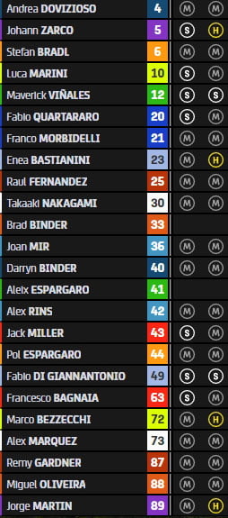 Quartararo, Rins, Aleix Espargaró (Voir ici) |