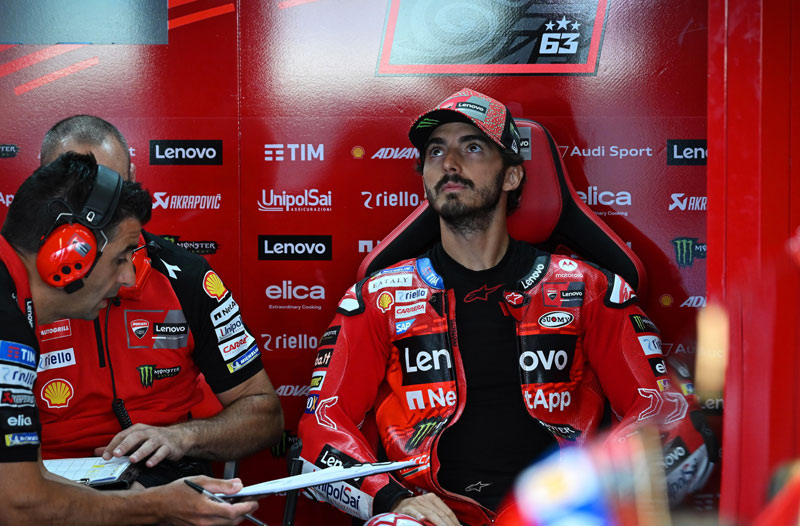 L’énervement de Pecco Bagnaia s’est ensuite porté sur certains de ses adversaires qui, comme en Moto3, attendent de plus en plus en roulant lentement pour prendre une roue. Comprenez la sienne… et comprenez aussi Marc Marquez qui a suivi la Ducati rouge pendant tout le premier run de la qualification et n’a d$u qu’au barrage des deux VR46 de ne pas pouvoir le faire au deuxième run…