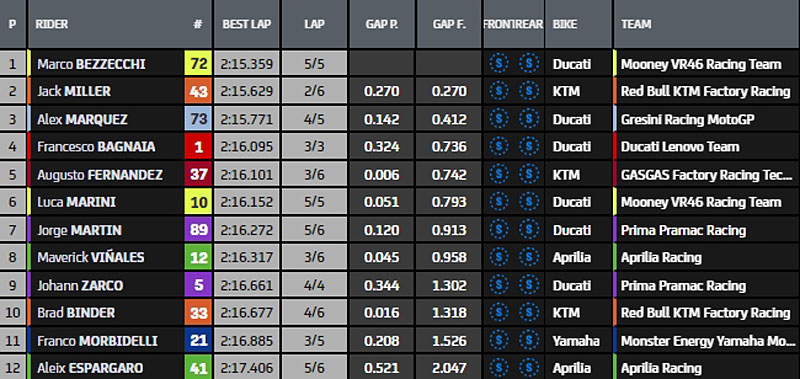 Résultats Q2 Silverstone MotoGP Silverstone 2023