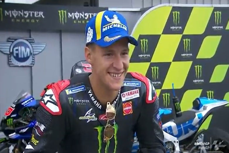 A peine descendu de sa machine après sa victoire lors du Grand Prix de Grande-Bretagne, Fabio Quartararo s’est confié devant la caméra du site officiel MotoGP.com.