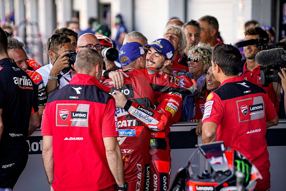 Avec sa deuxième victoire consécutive, la quatrième cette année, le pilote italien a réduit son écart de 91 à 49 points sur l’actuel leader du championnat MotoGP, Fabio Quartararo.