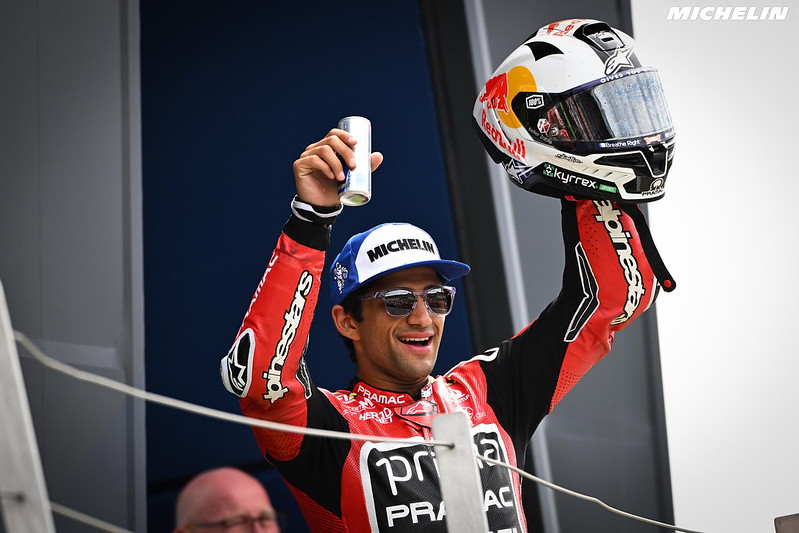 Jorge Martin : « Oui, c’est sûr. Je pense que ni le Sachsenring était très mauvais, ni un désastre, ni ici c’est le meilleur jour. Non, je veux dire qu’il est certain que nous devons trouver un équilibre sur l’ensemble de la saison. Je pense que nous faisons un travail remarquable. Et oui, c’est sûr que la pause estivale n’a pas été la meilleure. Je n’étais pas très heureux, c’est certain. Mais oui, faire un résultat solide comme celui-ci est fantastique, et comme vous l’avez dit, deuxième était le maximum. J’ai essayé de faire une course vraiment intelligente, j’ai essayé de gérer beaucoup de choses différentes, le rythme était rapide, j’ai essayé de gagner jusqu’à la fin, mais ensuite Enea m’a rattrapé et oui, j’ai essayé de rester avec lui, mais il était impossible de le battre. Il était à un autre niveau aujourd’hui, et oui, essayons d’améliorer certains domaines où je sens que nous avons besoin de confiance, et j’espère que ce sera le cas en Autriche. »