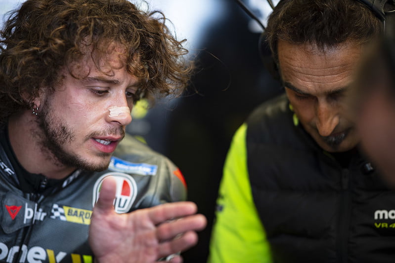 Quatrième du warm up, le pilote de Valentino Rossi pouvait être confiant en se plaçant sur la grille, mais c’était sans compter sur Enea Bastianini, placé à ses côtés sur la grille, qui est venu au contact au moment du départ avant d’aller faire de même sur Jorge Martin l’instant d’après, puis de revenir écarter Marco Bezzecchi dans le premier virage: celui-ci se retrouve donc 14e dès les premières centaines de mètres, et même P15 après deux tours suite à un mystérieux abordage. Un incident de course malvenu et dommageable, mais un incident de course quand même.