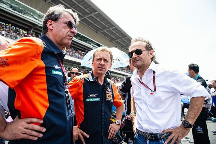 KTM ne veut pas équiper une deuxième équipe client mais se concentre sur quatre pilotes MotoGP. « En principe, nous devrions avoir quatre pilotes du même niveau technique. Malheureusement, cela n’est pas possible la première année, bien que nous essayions de nous occuper de la manière la plus optimale possible de Miguel Oliveira et d’avoir trois moteurs identiques. Mais dans le futur, ça devrait être comme ça ».