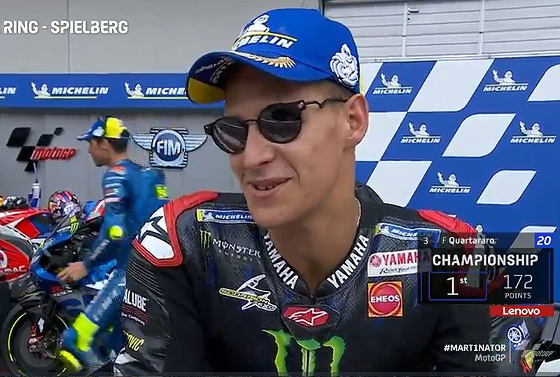 A peine descendu de sa Yamaha YZR-M1 officielle après avoir obtenu la troisième position à l’issue du Grand Prix de Styrie sur le Red Bull Ring en Autriche, Fabio Quartararo s’est confié devant la caméra du site officiel MotoGP.com.