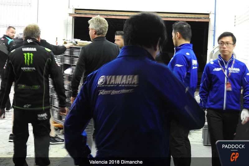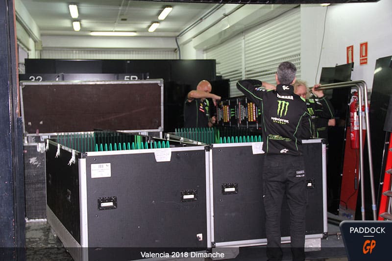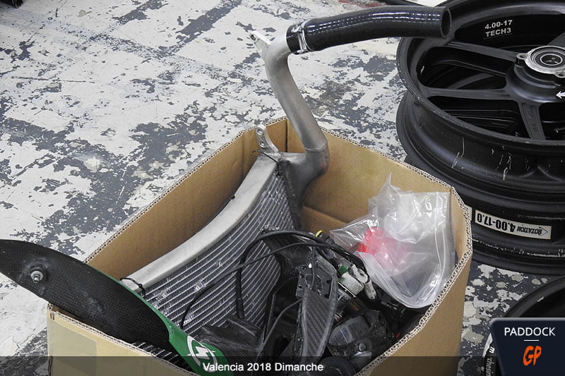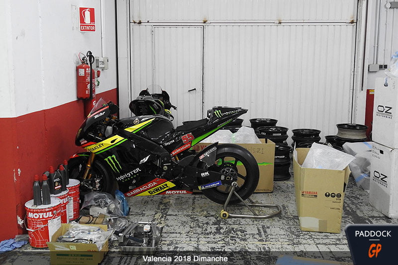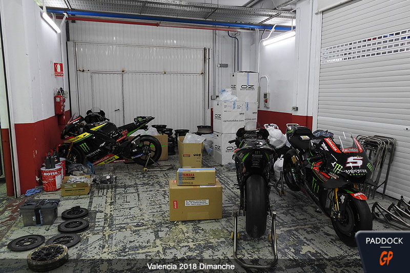 Ne restent alors que les motos de Johann Zarco et Hafizh Syahrin dans un box complètement vide, avant que leurs pièces détachées (cadres, bras oscillants, roues, etc.) ne viennent, jusqu’au dernier boulon, les rejoindre, dûment comptabilisées par les hommes de Yamaha: pour le moment, pas le moindre petit cadeau pour les hommes de Bormes les mimosas, après 20 ans de partenariat !