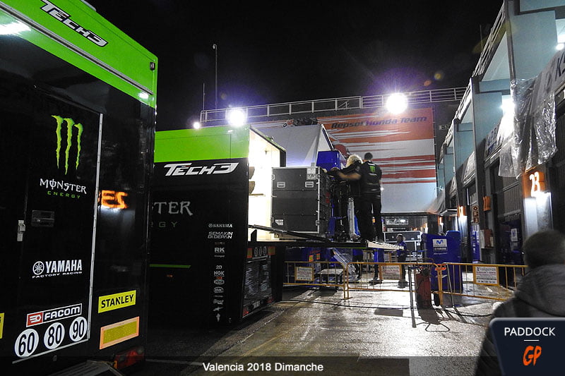 Puis, sous l’œil de Ramon Forcada qui a déjà quitté le box Yamaha de Maverick Vinales, commencent alors à arriver les premiers éléments de l’équipe Petronas dont les pilotes seront dès demain Franco Morbidelli et Fabio Quartararo.