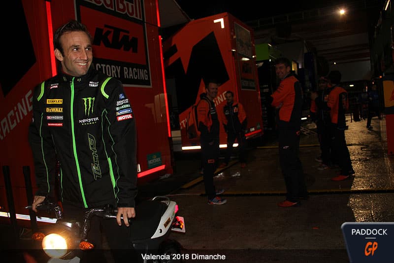 Coïncidence ou pas, Johann Zarco passe à ce moment-là et, à la question « vas-tu regretter tes motos ? », la réponse peut paraître surprenante et est sans doute due à la difficulté de la course de l’après-midi, mais en est sans équivoque : « non, pas de bisous. Je n’ai pas envie de regretter ma moto. Elle est encore géniale mais j’ai eu du mal ce week-end et je suis tombé 2 fois avec. Et je n’aime pas tomber ! ».